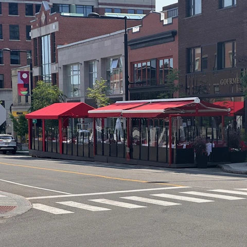 Our award-winning terrace is among the most pleasant in the Montreal area. It comes alive from brunch until late in the evening. Pretty red awnings gives a stamp, a "French brasserie" style and a cozy atmosphere. You can choose from our beautiful selection of private import wines available by the glass or by the bottle.